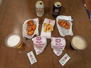 ある日の夕食〈146〉夫チョイス🤓🤚 今日は夫チョイスの夕食🍴(月曜日、木曜日、金曜日は夫の仕事が何時に終わるかハッキリしないので基本的に夫チョイスの夕食となっております🙇♀️)なんとも映えない写真になりましたが、ケンタッキーフライドチキンの和風チキンカツバーガー、チキンナゲット、ポテトでした🍔🐔🍟【お酒】サッポロラガービールヱビス