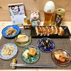 NEW ねぎ餃子🥟 × 人気のおかず盛り合わせ(鮭) × ヱビスビール🍺✨