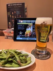 #エビスビール と 焼き枝豆