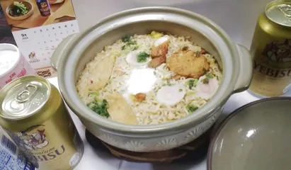 期限切れカップの処分。 賞味期限切れの Cup麺処分?取り敢えず2個を鍋焼き風にして食べる事に。そのままじゃぁ惨めなので、具材を入れてプチ豪華(?)に。何とかなるかナ?(流石に2個は多かった、苦しい~ぃ・・・)