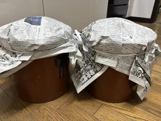 お味噌出来ました 今日、今年作ったお味噌を出しました。仕上がりは上々です。自然な甘みと旨みがあって美味しい一部を味噌用の瓶に詰め、残りはこれ以上発酵が進みすぎないようジップロックに入れて冷蔵庫保存します。消毒して瓶詰め。以前はラム酒でやっていましたが、最近はこちらのスプレーを使用しています大体これが味噌甕二つ分、約8
