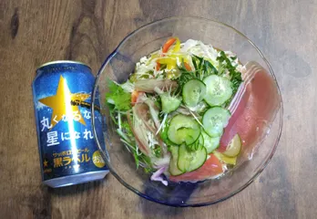 生ハムが美味そうですね。ボリュームのあるサラダそうめん、美味そう😎👍👏。