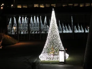 商業施設内の巨大なクリスマスツリー。毎年恒例で、心が踊る季節です。終われば迎春準備。門松が登場し慌ただしい年末年始です。