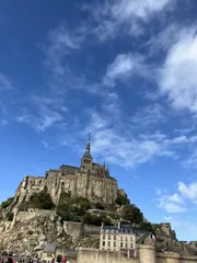 モン・サン=ミシェル 青空に映えるモン・サン=ミシェルの世界🌎、よかったらご一緒しませんか🙇♀️ 唯一、申し込んだオプションは、このモン・サン=ミシェルツアー✨朝の7時15分に、パリを出発、大体4時間のバス🚌の旅です気温は20℃に届きませんが元気に出発🙋♀️ちょっと天気が不安定の中、牛🐮や馬🐴を見ながらバス