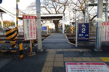 澪部町おもちゃ博物館の最寄り駅の国谷駅から、東武宇都宮線に乗って東京に戻りました。実は東武宇都宮線は単線で、各駅前で線路が分岐してホームを挟む形で上下線が止まる駅が多いのですが、国谷駅は上下線が入れ違いの形でした。そしてそれぞれのホームの先頭に、向こうのホームに渡る踏切がありました。たまに駅内の踏切