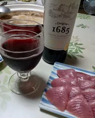 10月1日はワイン🍷で 10月1日は家人の誕生日でしたので、ワイン🍷で乾杯でした👏👏ワインは〈オリジネ 1685 ボルドーレッド〉フランス ボルドーメジマグロのお刺身🐟~本マグロの幼魚 美味しい😍🎶早くも“鍋”が登場🍲~大根豚ロースしゃぶしゃぶ🐷✨ワインも勿論美味しかった💮ご馳走さまでした🎉🎉