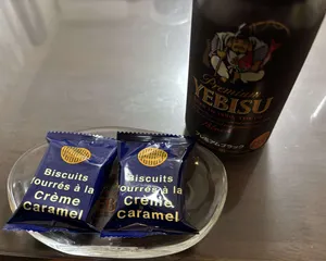 Biscuits fourrés à la Crème Caramel 資生堂パーラーのクレームカラメル開封した瞬間にカラメル臭が😆サックサクのウエハースにキャラメルの甘さここはプレミアムブラックで🍻