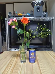 「プレミアムエール」初飲み飲んでる時も、飲んだ後も、濃厚なホップの香りに満たされる長男が、慰問先の養護施設から花をもらってきた花瓶が無いので、ヱビスのグラスで間に合わせ『ごめんなさい!』