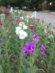 アイキャッチ画像は紫と白のストック。 冬の公園は色が少ないですが、可憐な花が咲いていました。濃赤紫と黄色のパンジー