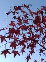紅葉色づき 風に擦れ傷付きながらも落葉せず赤く色づきました。