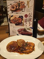 名古屋コーチンのロールドチキン🐓巻くのが難しいんでしょうね🤔メニューの写真と若干違うけど、きれいに盛り付けようとしている努力が伝わる一品でした😊銘柄チキン、味の違いはよくわかりませんが、隠れていないプルーンが隠し味的で、美味しかったです😊敷いてあるソースも美味しかったです😊しかしながら価格的にリピー