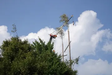 千住本氷川神社 8月31日日曜の続きです。長円寺の北に、千住本氷川神社があります。遠目に見ても分かるように、長いクレーンを使って木材を立ち上げています。行ってみると、ちょうど鳥居の少し奥に建てていました。すごく高いです。そのため、正面からの写真はありませんが拝殿です。こちらは末社です。本殿は、珍しい銅板葺きです。み