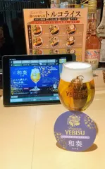 仕事を、終えてYEBISU アピア店へ… 一杯目和奏です仕事ポジション激変で、😣💦⤵️ました‼️三口で飲みました😁👀‼️二杯目ヱビスビールです何と‼️樽開け👀うれし~いです泡が盛りあがっていますはて‼️うふふ✨ヤー✨🍻🎶🍀