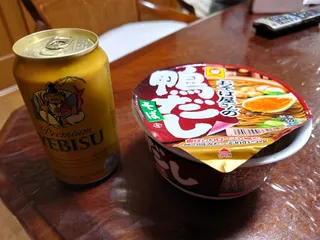 年越しそば 今年のシメは、ヱビスと鴨だしそば。皆様、今年も一年お疲れ様でした!