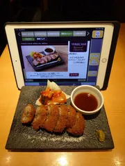 三度目の正直❓😉 YEBISU BAR上野店限定メニュー【スパイシーラムカツ】過去2回注文して2度とも衣がボロボロだったので、店長に不満を伝えて2度と注文をするつもりはなかったのですが、クーポンが届いていたので三度注文してみようかなと🤔綺麗に盛り付けられていて一安心🥰美味しく頂きました🙇ヤー❗👍