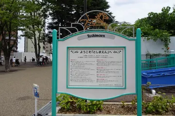 としまえん 8月9日土曜の続きです。せっかく豊島園駅で降りたので、としまえんの跡地の公園と、ハリーポッター スタジオツアー東京も見に行きました。公園に入ってすぐにアイキャッチ画像の看板と共に、ジェットコースターのレールと、としまえんの門の一部と、実際にとしまえんで使われていたベンチがありました。ちなみにこのベン