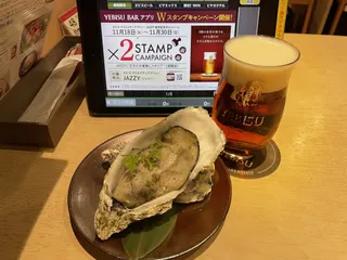 仕事終わって帰る途中のYEBISU BAR ❌2STAMP CAMPAIGNなので😁 大好きな牡蠣のマリネとJAZZYとともに♪