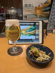 エビスバー 澄深しいただきました。コクがあって美味しい。おすすめのおつまみと一緒に美味しかった!