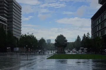 狐の嫁入り 8月11日月曜の続きです。行幸通りですが、空は明るくなっているのに、しっかり雨が降っています。