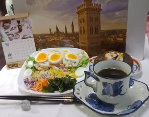 日本唯一の神恵比寿天さん いいですね、シンプルな🍜 サンド2つとこの🍜でお腹は足りたのかしら❓🙂