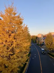 朝日に輝く銀杏並木 朝日に輝く銀杏の黄金の輝き。いつもにも増して朝日に照らされ恵比寿色に輝いて見えました。