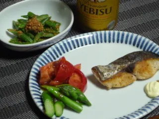 今日は和食ずくめで、ヱビスビールを飲みました。 鰆です。美味しかったです。