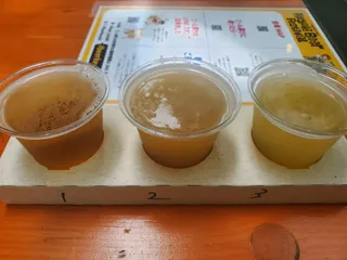 別府ブルワリー🍺 2店舗目は別府ブルワリー🍺飲み比べセット🍺✨🍺左から湯上がりピルス、湯けむりヘイズ、かぼすセゾン。