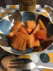 柿とヱビスビール🍺 柿をつまみながら、ヱビスビール🍺