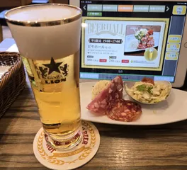 銀座ライオン渋谷マークシティ店🦁平日15時~17時限定メニュー✨🍻🎶これはお得です😃✌クラウトザラート、ポテトサラダ、サラミ、サッポロ生ビール黒ラベル小グラスが付いて、CLUB LION 会員価格税込780円‼️ビール小グラス単品価格が税込670円なので、税込+110円でおつまみ付きです。税抜きです
