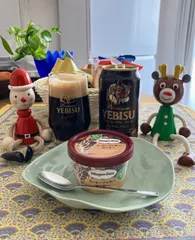 帰宅後の乾杯は金YEBISU🍻❣️お腹ペコペコで焼きうどんを‥ソースとニンニク醤油で味付け🥢😋❣️今夜はデザートもいっちゃおっ🍨🍎アイスにりんごのコンポートをのせて🍨🥄🍎し、あ、わ、せ🥰🩷ご馳走さまでした♪