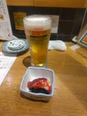 万博帰りの行動② 万博帰りの寄り道、ポケモンセンターを後にして梅田のルクア大阪へ。まだ若干早めだったので空いているお店が多くいざ探すと悩む🤔 徳田も空いてたが反対側のふじ子は行ったことがないのでふじ子に決定😉 付きだしはクジラベーコン、懐かしの味😋ビール🍺はアサヒでした🤣