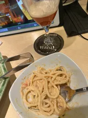 両親と一緒にエビスバー新横浜店に来ていました𐔌՞ ܸ.ˬ.ܸ՞𐦯 エビスバーで飲むはじめてのお酒は白桃アンバーを頂きました.ᐟ.ᐟ 明太子のクリームパスタと一緒に食べたのでぐんぐんお酒がすすみました🍺∩(´^ヮ^`)∩🍺 私が飲兵衛になる日もそう遠くは無いの