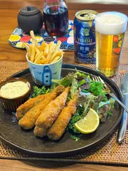 メヒカリのフライにレムラードソース、ポテトフライまで揃ったら、今夜はエビス〈和奏〉。