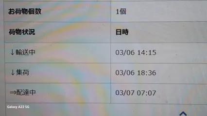 宅急便のお知らせ配送状況です。03の部分が7月なら07が4個そろいますがそういうこともあるかも。最近ゾロ目に縁があって不思議な気持ちです。