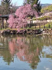 池に映ったところもなんかいい感じ😀鯉もお花見🌸子どもたちは滑り台を滑りながらお花見❔これからの桜楽しみです😊