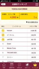 個人成績はリアルタイムで分かりますが、現アプリは真夜中のバッチ処理(3:00〜4:00)でランキングが更新されるため未だ新宿店は昨日の4,955御朱印のままです。しかし履歴の通り5杯頂きヱビバ新宿店の御朱印(スタンプ)5,000に到達ヤー‼️🫡