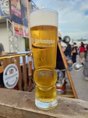 🇩🇪横浜オクトーバーフェスト2025🍻 右側の陶器ジョッキは、ビア友が持参したマイジョッキです👍フリートークに内容はある程度記載したので、こちらでは写真と追記という感じでアップしたいと思います😊飲食はテント内が基本でしたが、昔からの仲間が外で飲もうと言うので、世界最古のBREWERYと言われている【ヴァイエンシュテファン】のブースでサシ飲