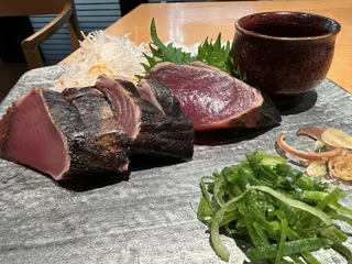カツオの藁焼き美味しいですね😋藁の香りが堪りません😊新じゃがの小豆島生海苔バター焼き熱々ほくほくで美味しかったです😋ごま油香るピリ辛葱カツオこれ一品で更にビールが進みますね😆