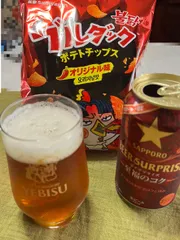 ようやく帰って来て 冷えた身体を♨️でしっかり温め (今日は熱海の湯🤭)上がった後は お待ちかねの昼過ぎ飲み🍺🎶 キンキンに冷えた「至福のコク」と ブルダックポテチでかんぱぁ〜い🍻🍻が、この韓国🇰🇷ポテチ、味がなんと チリ、ハバネロ、レッドペ