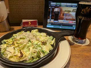 1週間の仕事の疲れ、ストレスを浩養園で発散してま〜す😊焼きキャベツの焦がしねぎソース!これは絶品です!(支配人と店長に教えてもらった!😅💦)普段メニューを見ても素通りだったけど…!お二人に訊いたら是非お試しあれと…!😉食べて見たら美味いっ!😆マジで…!🤣いい肴を教えてもらった〜!😋感謝‼️😘スパイシ