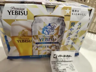 NEW イトーヨーカドーでありました🍺 ヱビス WHITE SUNがありました❗フライングゲットできました👍 冷えてるのはありましたが冷えてないのを希望して6缶パックを出してきてもらいました😀 明日飲みたいと思います🍺