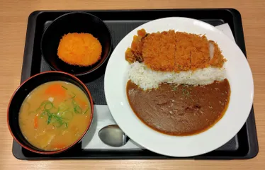 お気に入りの松のやでブランチ🍴店舗限定メニューの「濃厚コク旨ロースかつカレー豚汁セット」に無料サービス券でコロッケをプラス🍛🐷🥩松のや、2月18日から新たにカレーメニューが加わったので期待してオーダーしたが、自分にはカレーがちょっと甘い😓ガラムマサラでも置いてあればもう少し辛くして美味しく食べられる