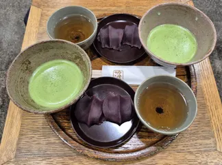 観光の後の一服🍵 本日は,妻と…。あいにくの天気☂️なので,妻は機嫌が悪い!。歩くの嫌だ!帰ろう!と。しかし,私が,“ここで,休憩!”と言ったら…。妻は,機嫌が良くなりました。甘い物に弱いみたい…。