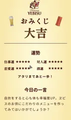 【本日の御神籤】 YEBISU BEER TOWN…大吉 YEBISU BARアプリ……末吉 6日間の禁酒期間を終えた🙌 3日以上の禁酒🆖かなり久しぶりだった😅 今日は飲むぞ❗🤭 何処で飲もうかな🤔