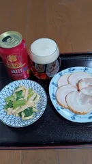 今日の酒の肴は 焼き豚と 小松菜とメンマの和え物 好きな つまみで 今日はもう1本飲んじゃおうかな。