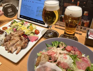 クジで当たったジョッキ無料券を使いに大崎店へ💨14周年イベントのローストチキン、ナイフとフォークではずしやすく、やわらかい💕レモンをかけて爽やかな味も味わえます。唐揚げとはまたひと味違う、定番になってほしい一品でした。ごちそうさまでした😊実はもう一つの海老と春野菜のブルゴーニュ風✕エールも頼んじゃい