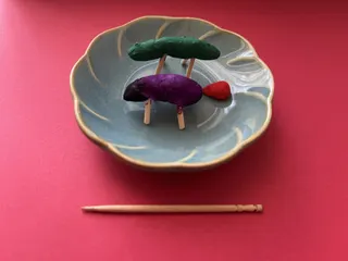 8月のしつらえ 8月になりました。つくる計画は一年以上前からしてましたが、やっと完成が月始めに間に合いました。タイトルは「精霊馬」です。早速、9月のしつらえづくりに取りかかりたいと思います!