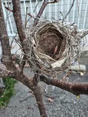 ごめんね…😭 我が家の庭の桜の木昨年の葉が生い茂っている頃"今年はヒヨドリがたくさんいるな〜"と思っていました。葉っぱがなくなると…何と!😲立派な巣がありました! そして今日、桜の木の剪定をしたので近くで巣🪹をじっくり観察🧐綺麗に丸ーく丈夫な造り😄👏素晴らしい!多分、巣🪹って使い捨てだとは思うけど何とな