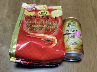 まるさん 自己責任燻♬🤭 YEBIつよ🏠にも 後1本ありますけど もったいなくてなかなか飲めません😂 つまみの湖池屋ポテチ 金沢甘えび 先日食べましたよ👍 いつも石川能登応援📣 ありがとうございます♪