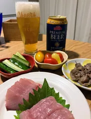 なんちゃらoffに誘われて♪ 今夜はひとりでゆっくりご飯‥仕事からの帰り道‥スーパーの5%offに合わせて買い物🛒‥ひとり分に適量の天然はまちの柵を見つけて👀✨🐟337円❣️ここから5%引き🤗‥砂肝もちゃっちゃと🛒に‥今晩はしっかりご飯と味噌汁付きで頂き終了です‥🍺摂取量は350ml🤭ご馳走さまでした♪‥‥10/30日付